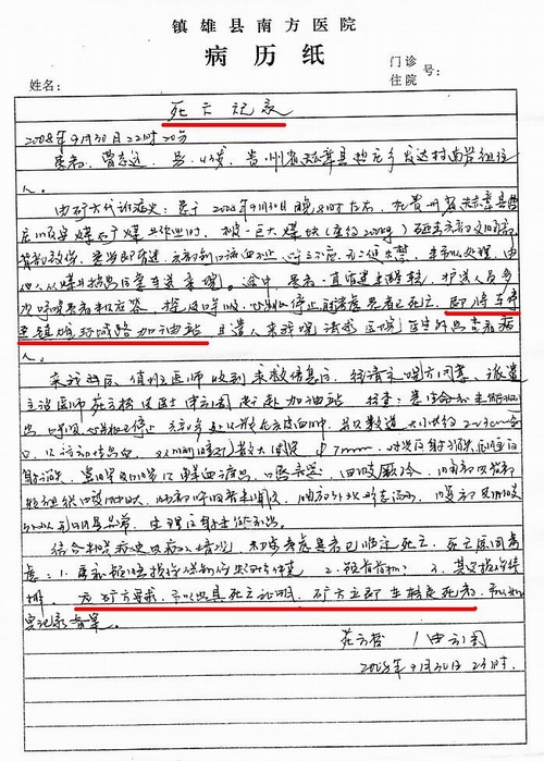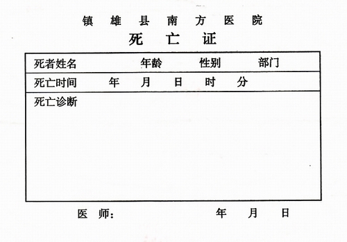 矿方私下要求云南省镇雄县南方医院开具“死亡证明”样