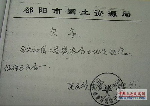 2003年起至今,在邵阳市城区内搞起了一场轰轰烈烈的紫薇博览园“的圈地开发运动,八年共骗取了国家数千万元农业开发扶助款,在当地市委副书记批示“请国土局给予支持”下,竟分文未交,3500亩土地数次变脸,化整为零,建商铺、造别墅,已非法谋利数亿元。保护伞层层假报,土地黑洞触目惊心。