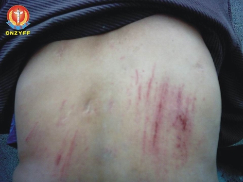 图为中在10·28事件现场被殴打其中一位村民血淋淋