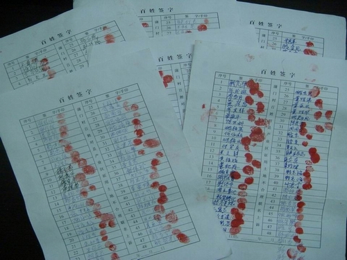 图为宁波市象山县贤庠镇蒲门村村民联名签字