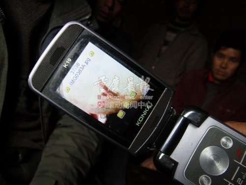 家属用手机拍摄的图片显示,郭永华被派出所副所长张磊开枪打死后,有人用砖头砸死者脑袋,脑袋上留下被砖砸痕迹。记者 郎清湘 摄